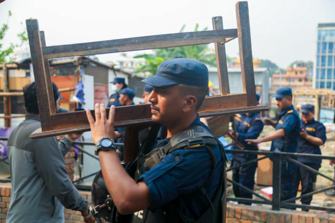 सुकुम्बासी बस्ती खाली गराउन सहयोग गर्दै नेपाल प्रहरीका जवानहरू (तस्विरसहित)
